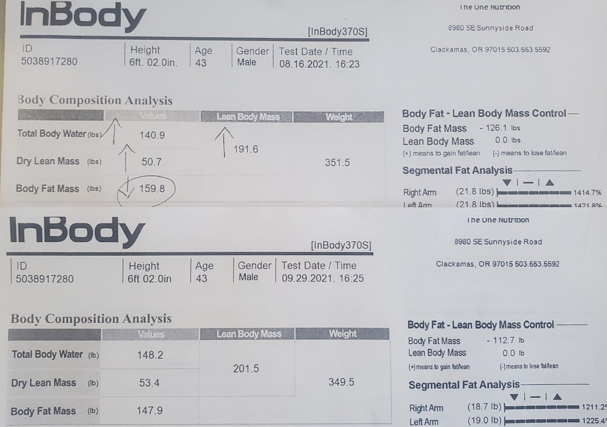 We’ve been slammed with training clients back to back, updating social media hasn’t been the best, but here’s another transformation of Ian. The date of original scan was 8-16-2021.  The second scan was 9-29-2021 Down 12 lbs of fat. Up 11 lbs of lean mass.